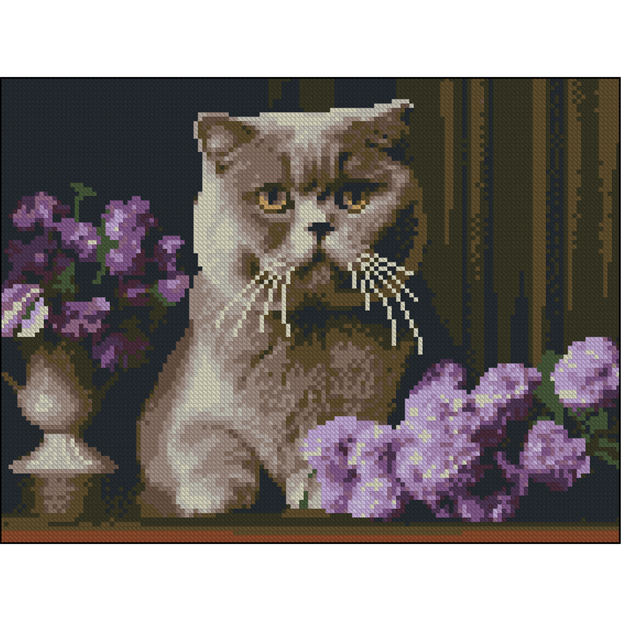 Алмазна картина Strateg Сірий кіт 30х40 (ZAV3040-60)