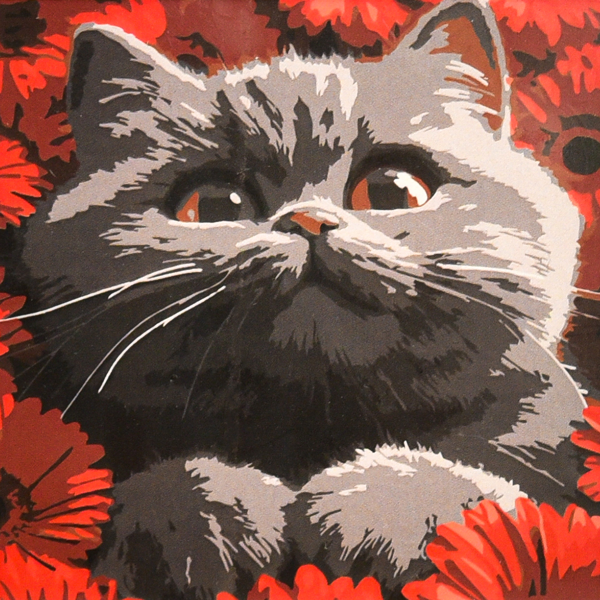 Картина за номерами Strateg Кіт у червоних квітах 20х20 (HH8043)