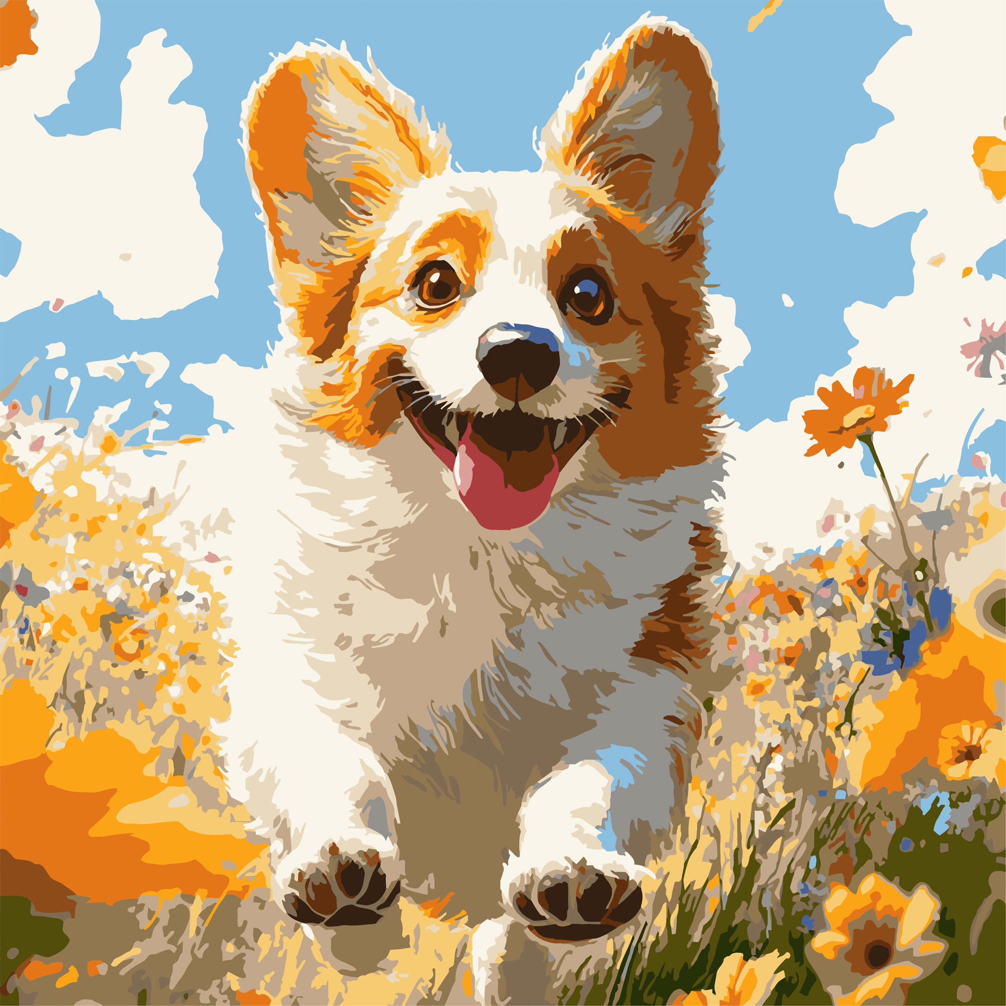Коргі в осені 30х30 (ES-0908)