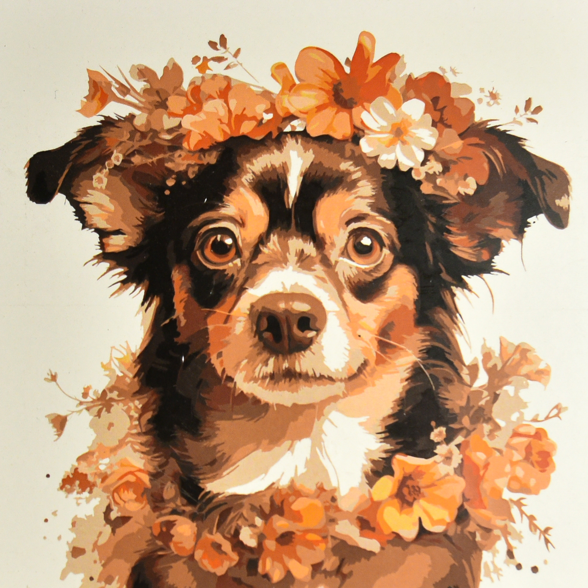 Картина за номерами Strateg Песик у вінку 30х30 (ES-0921)