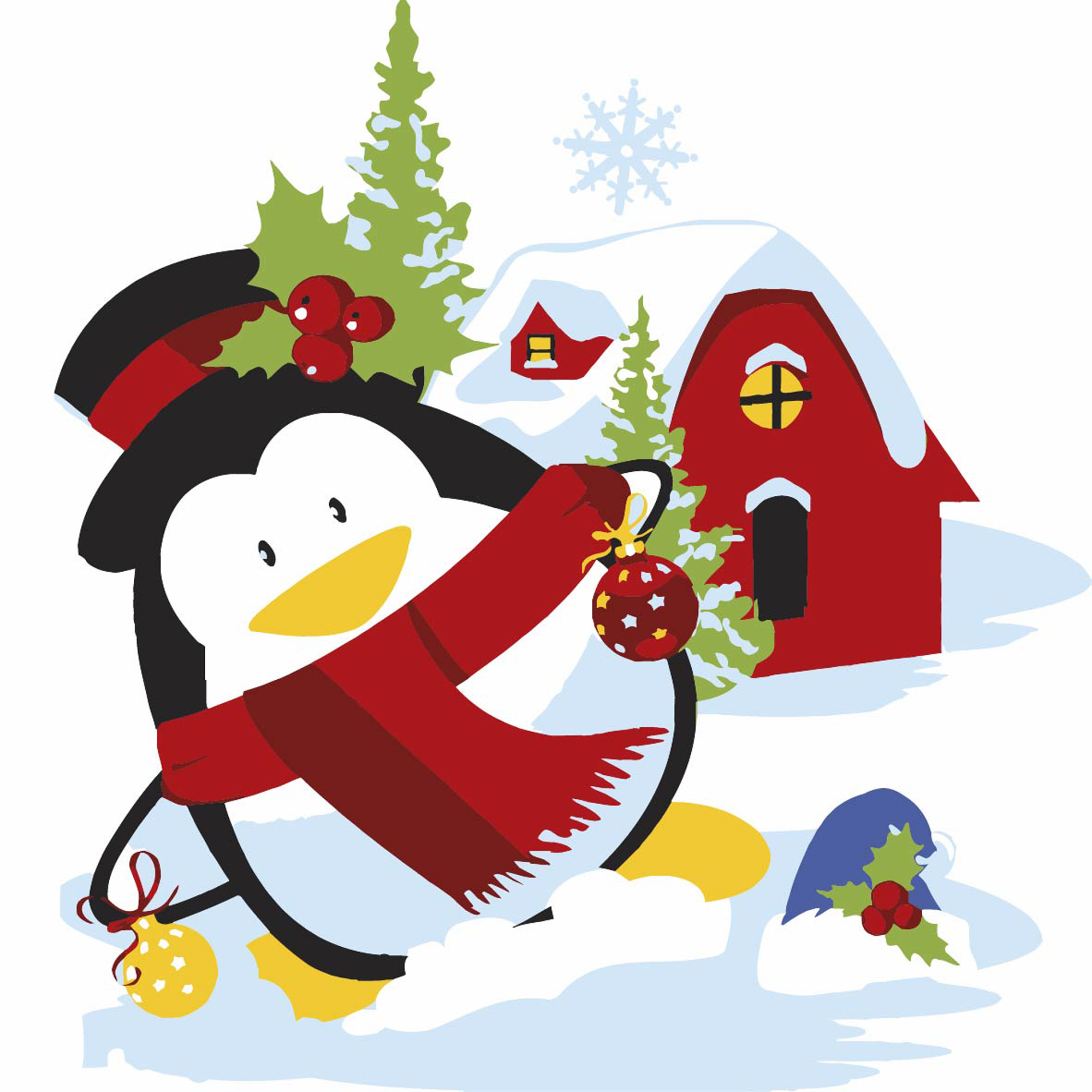 Картина за номерами Strateg Пінгвін біля будинку розміром 20х20 см (HH8003)