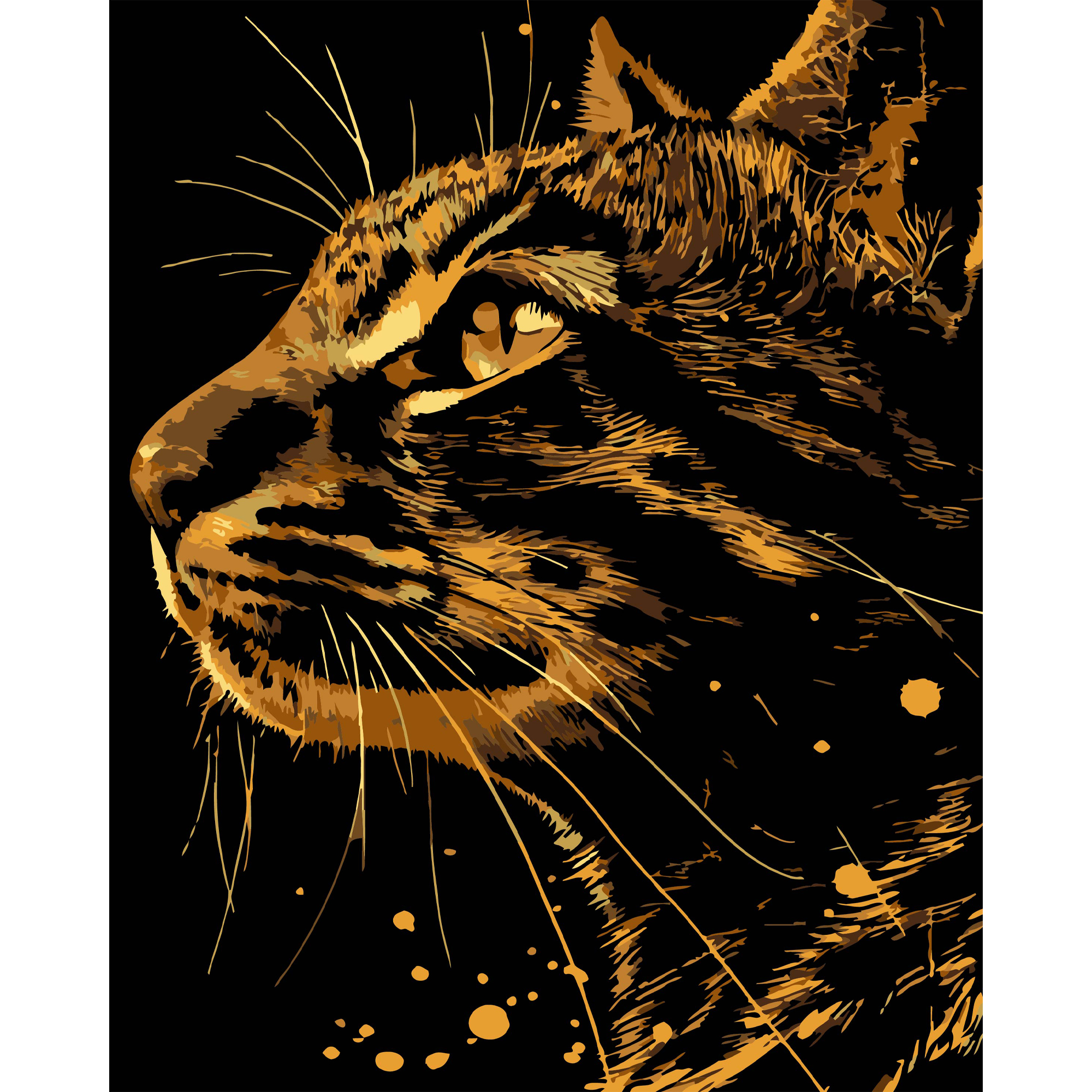 Картина за номерами Strateg ПРЕМІУМ Бенгальський кіт на чорному фоні розміром 40х50 см (AH1211-8)