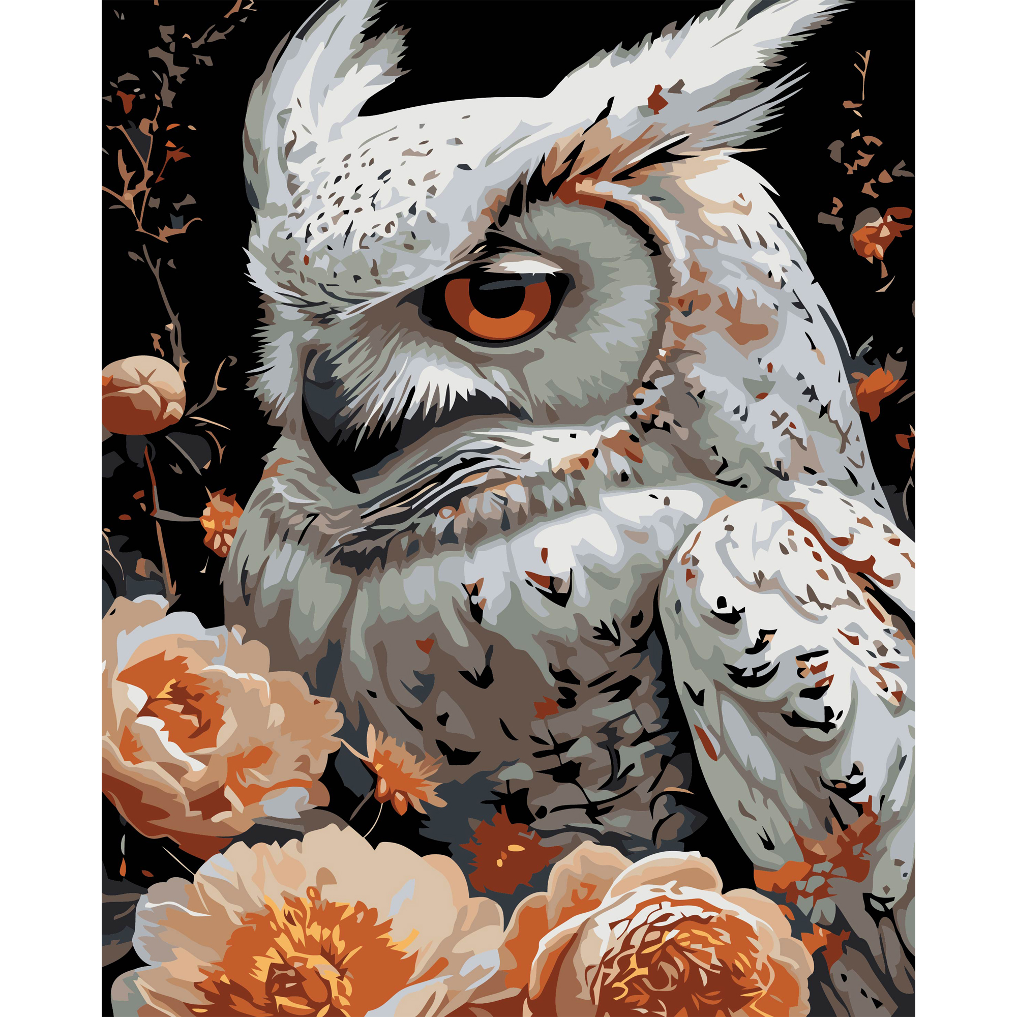 Картина за номерами Strateg ПРЕМІУМ Біла сова на чорному фоні розміром 40х50 см (AH1237)