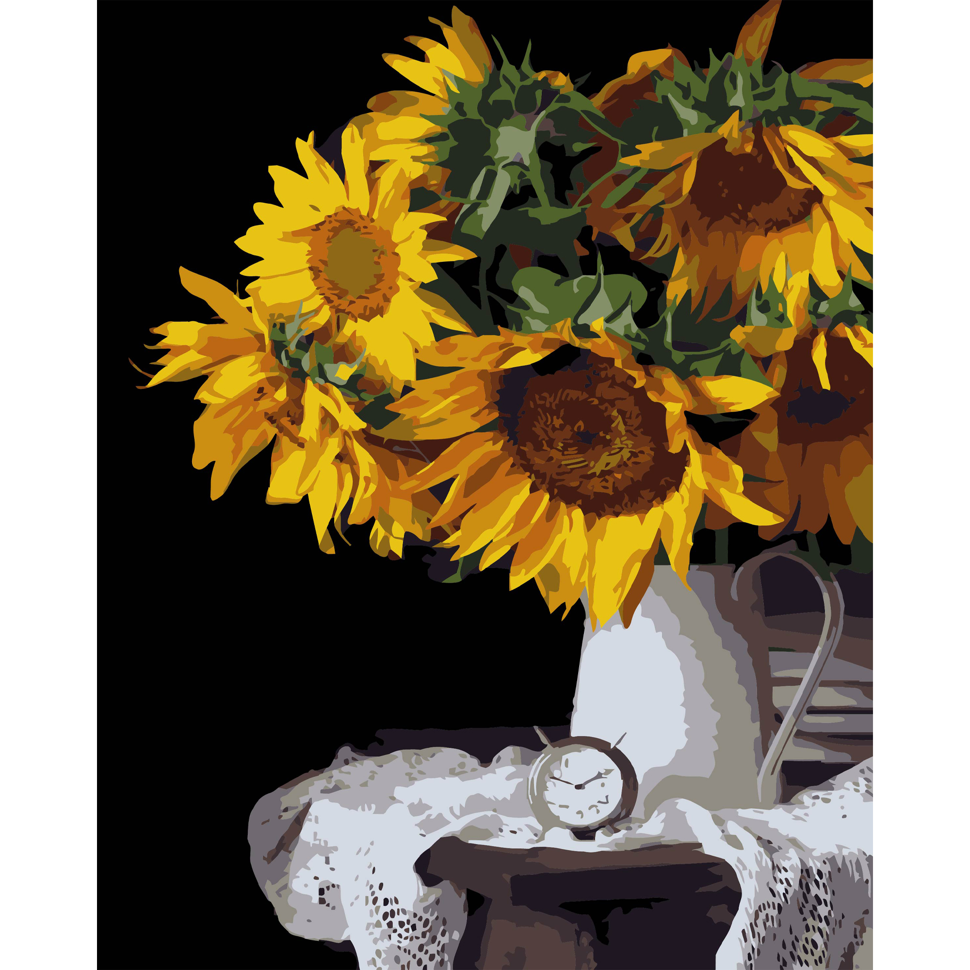 Букет соняшників на чорному фоні розміром 40х50 см (AH1232-17)