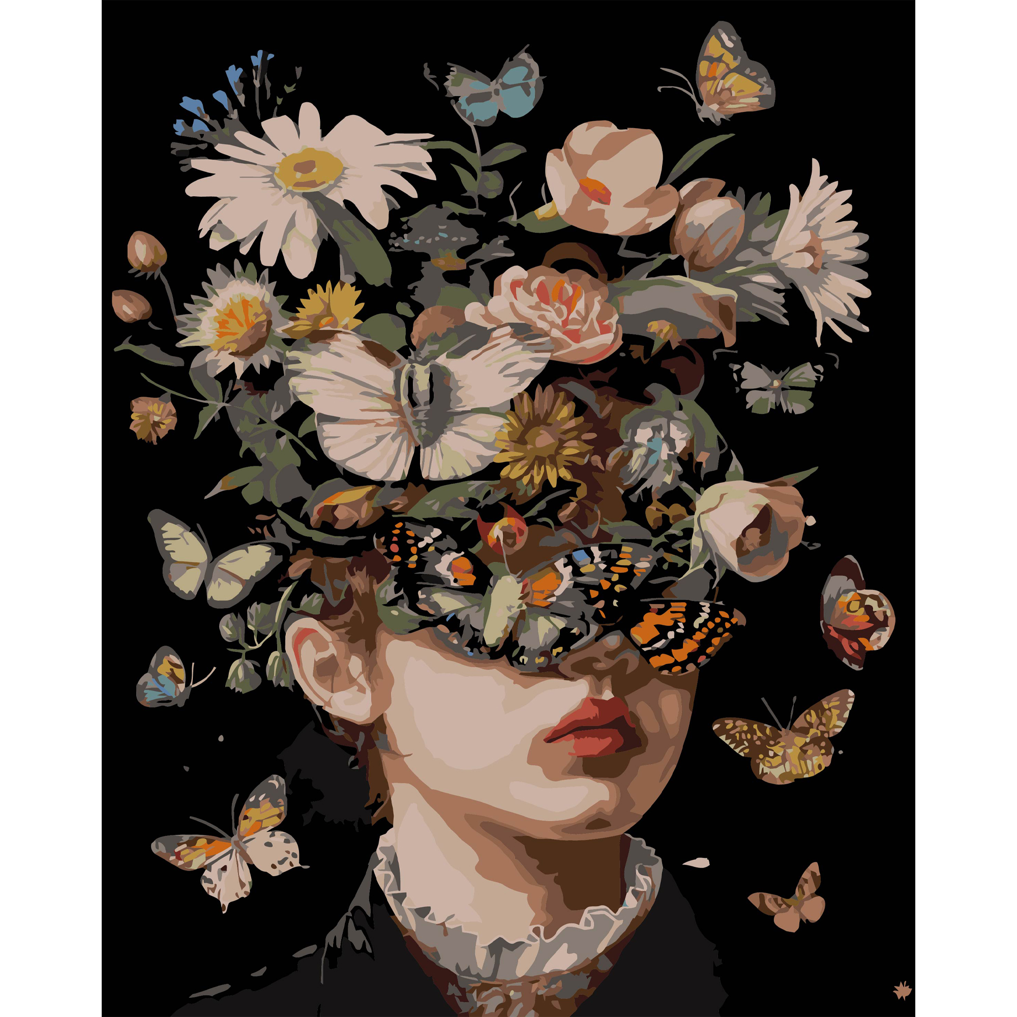 Дівчина і метелики на чорному фоні розміром 40х50 см (AH1176-19