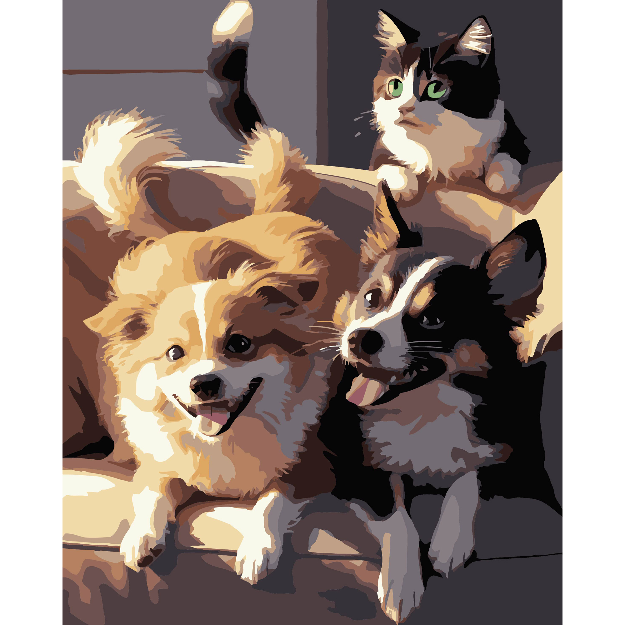 Картина за номерами Strateg ПРЕМІУМ Дві собаки і кіт на чорному фоні розміром 40х50 см (AH1190-17)