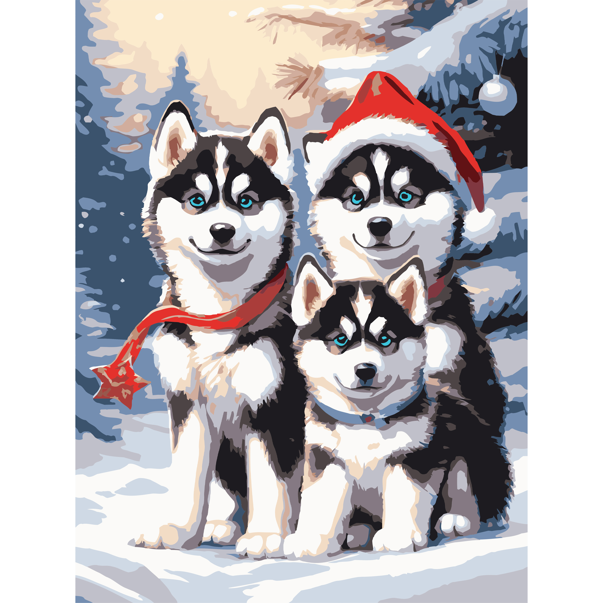 Картина за номерами Strateg ПРЕМІУМ Хаскі в снігу з лаком та з рівнем розміром 30х40 см (SS1242)