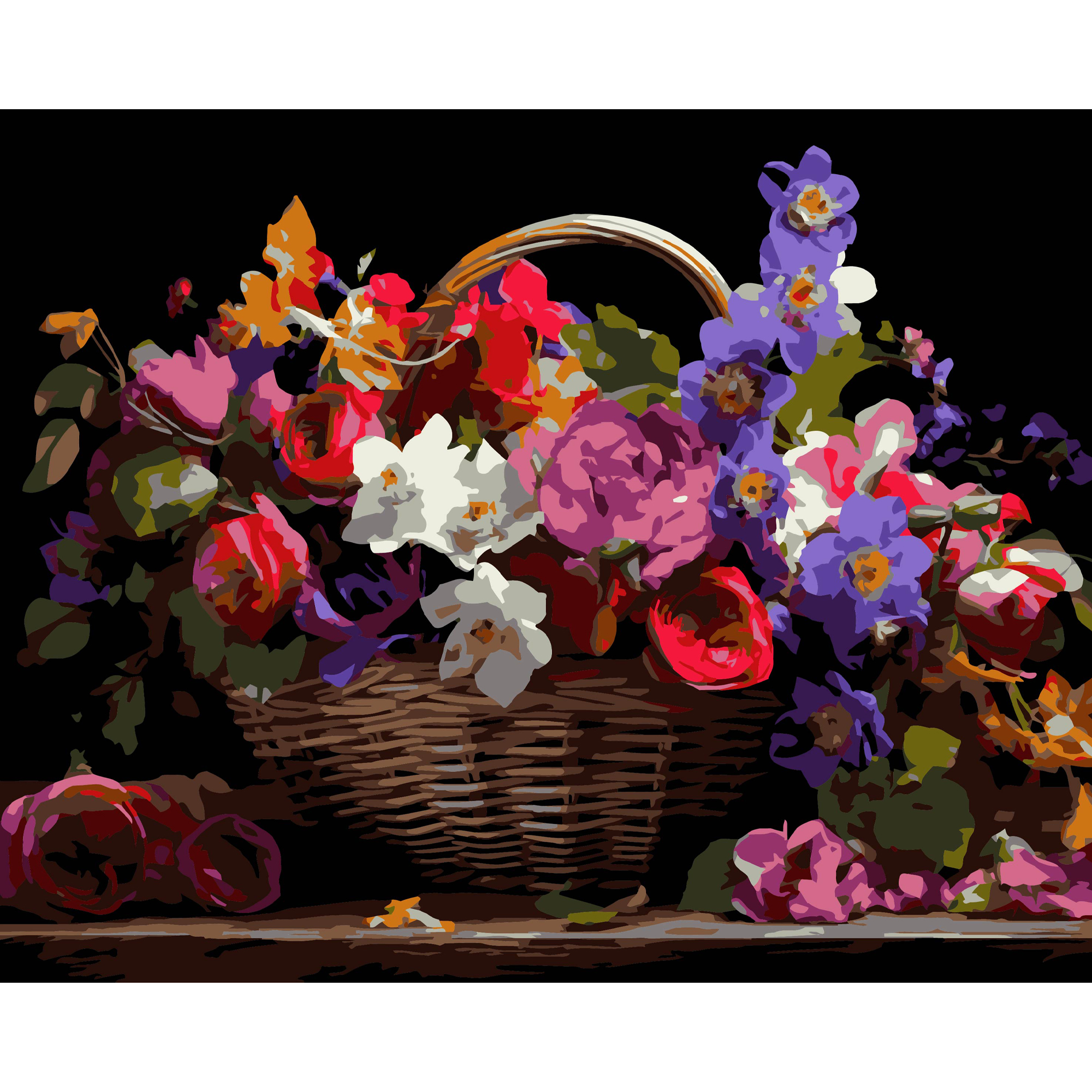 Кошик різнокольорових квітів на чорному фоні розміром 40х50 см (AH1213-19)