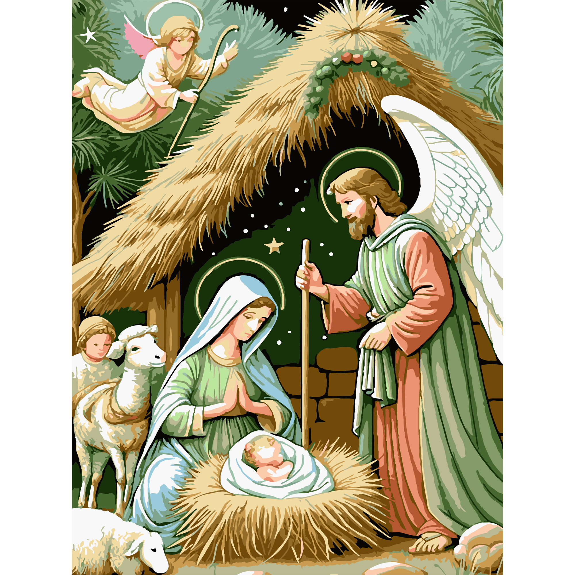 Картина за номерами Strateg ПРЕМІУМ Народження Ісуса з лаком та з рівнем розміром 30х40 см (SS1231)