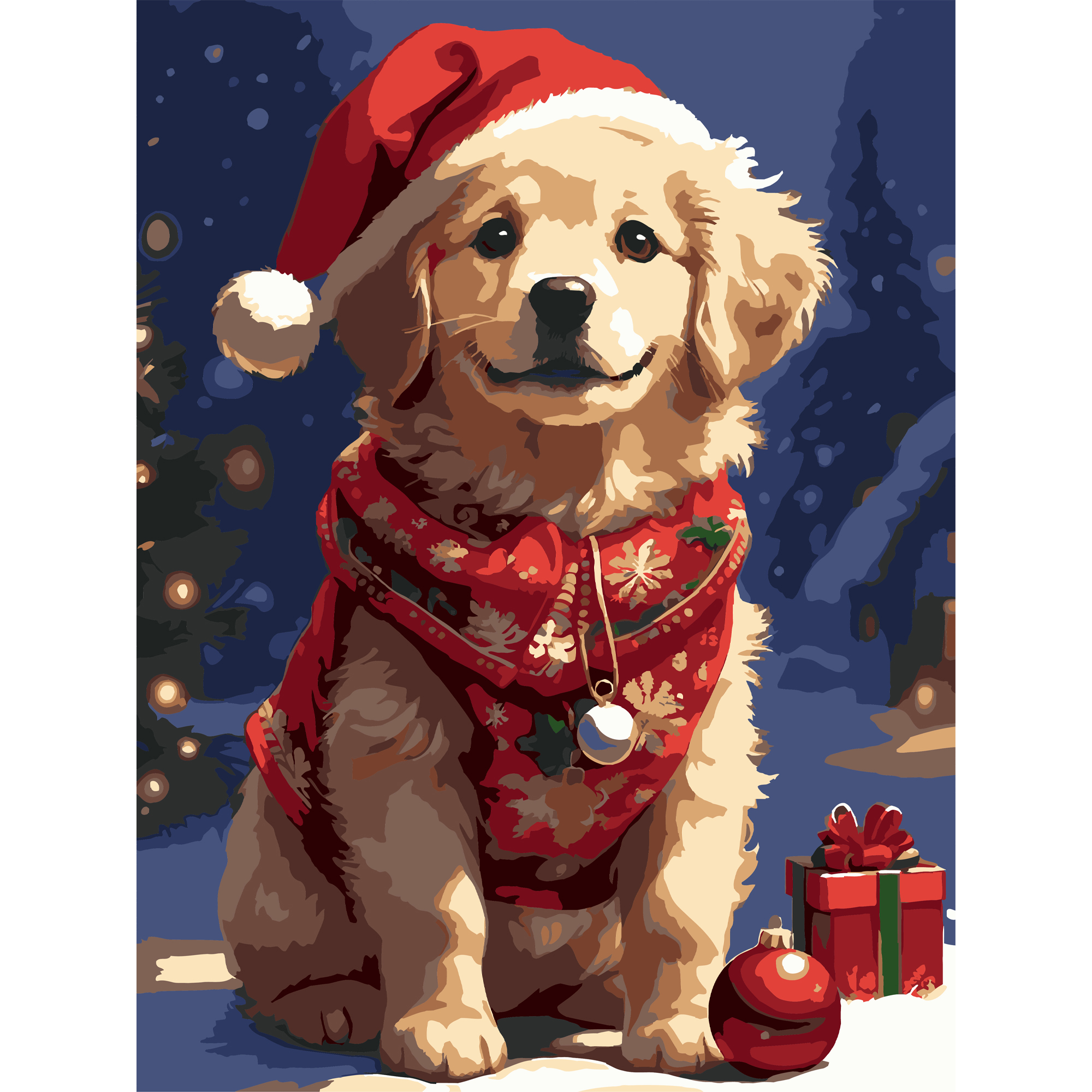 Картина за номерами Strateg ПРЕМІУМ Новорічний пес з лаком та з рівнем розміром 30х40 см (SS1234)
