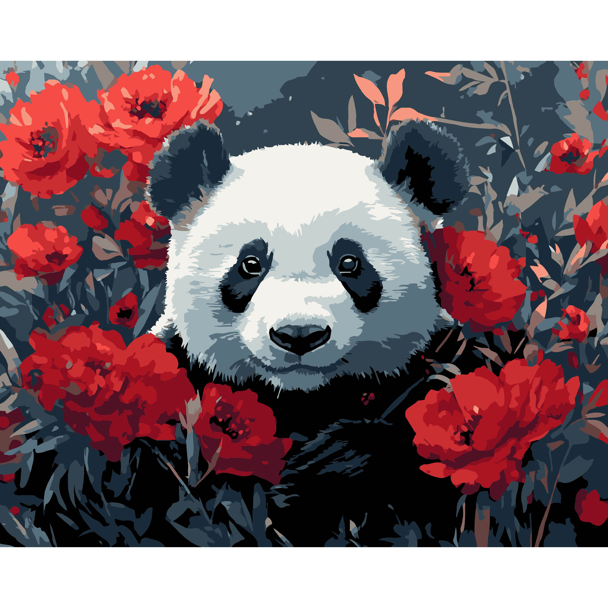 Картина за номерами Strateg ПРЕМІУМ Панда в маках на чорному фоні розміром 40х50 см (AH1197-15)