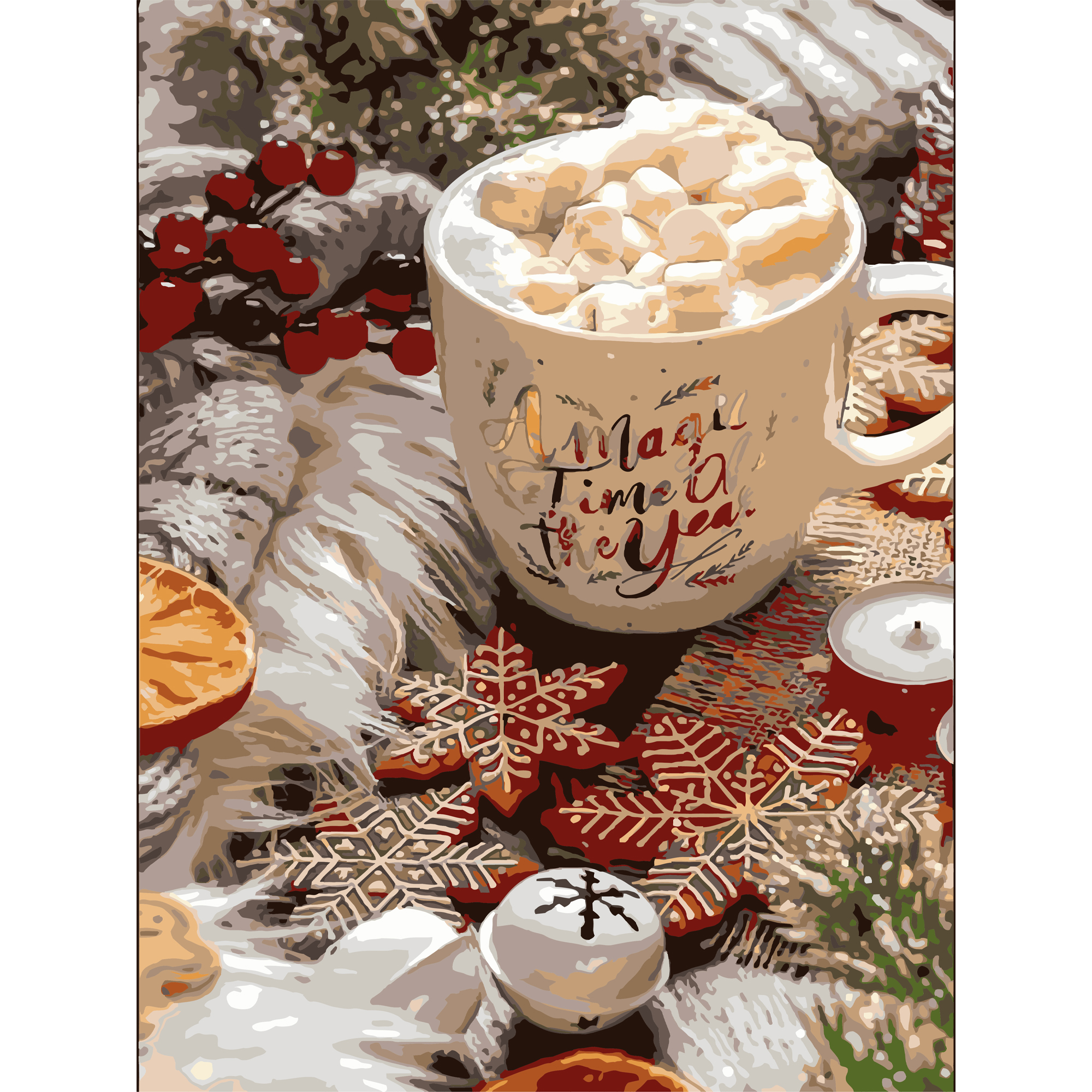 Картина за номерами Strateg ПРЕМІУМ Різдвяне какао з лаком та з рівнем розміром 30х40 см (SS1239)
