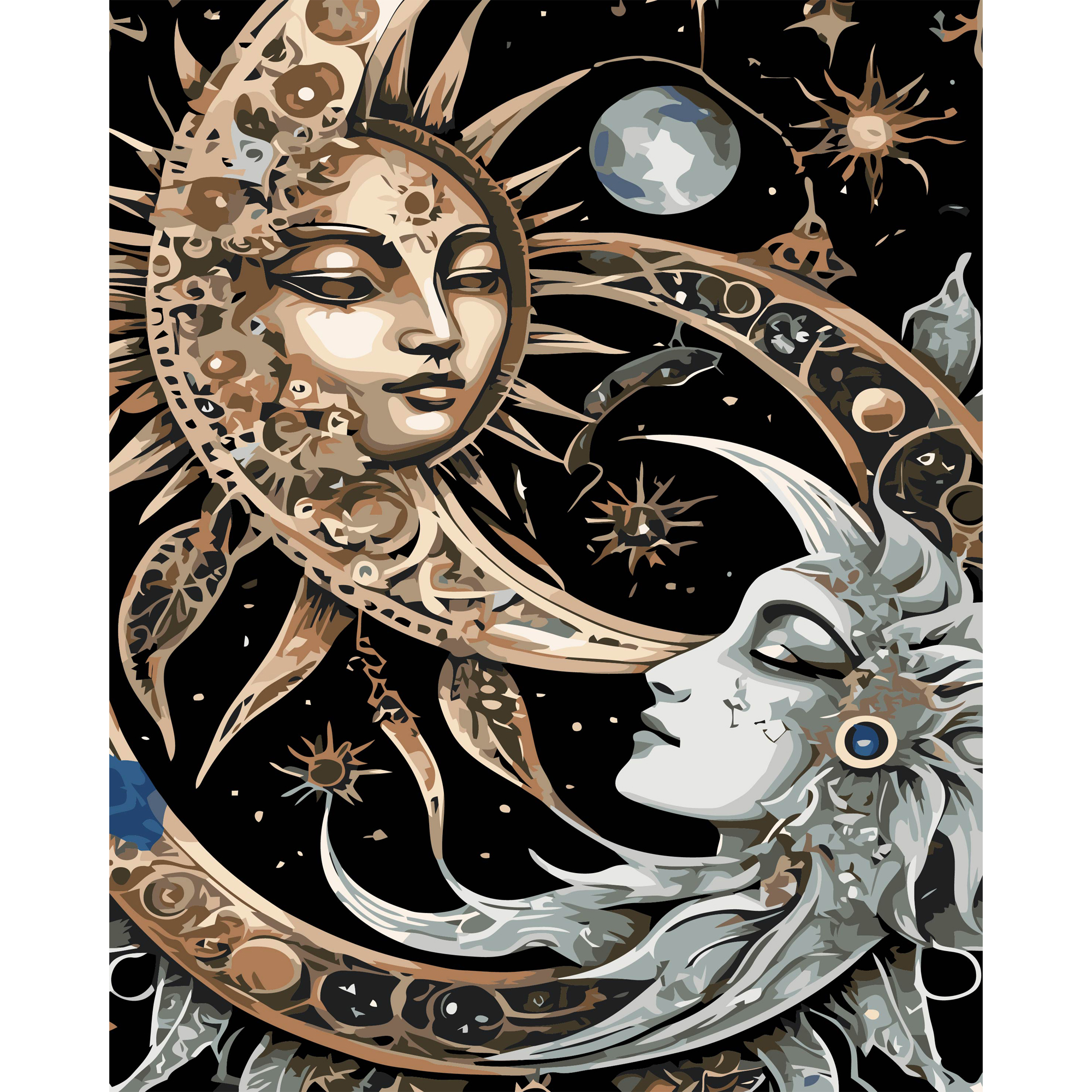 Картина за номерами Strateg ПРЕМІУМ Сонце і Місяць на чорному фоні розміром 40х50 см (AH1238)
