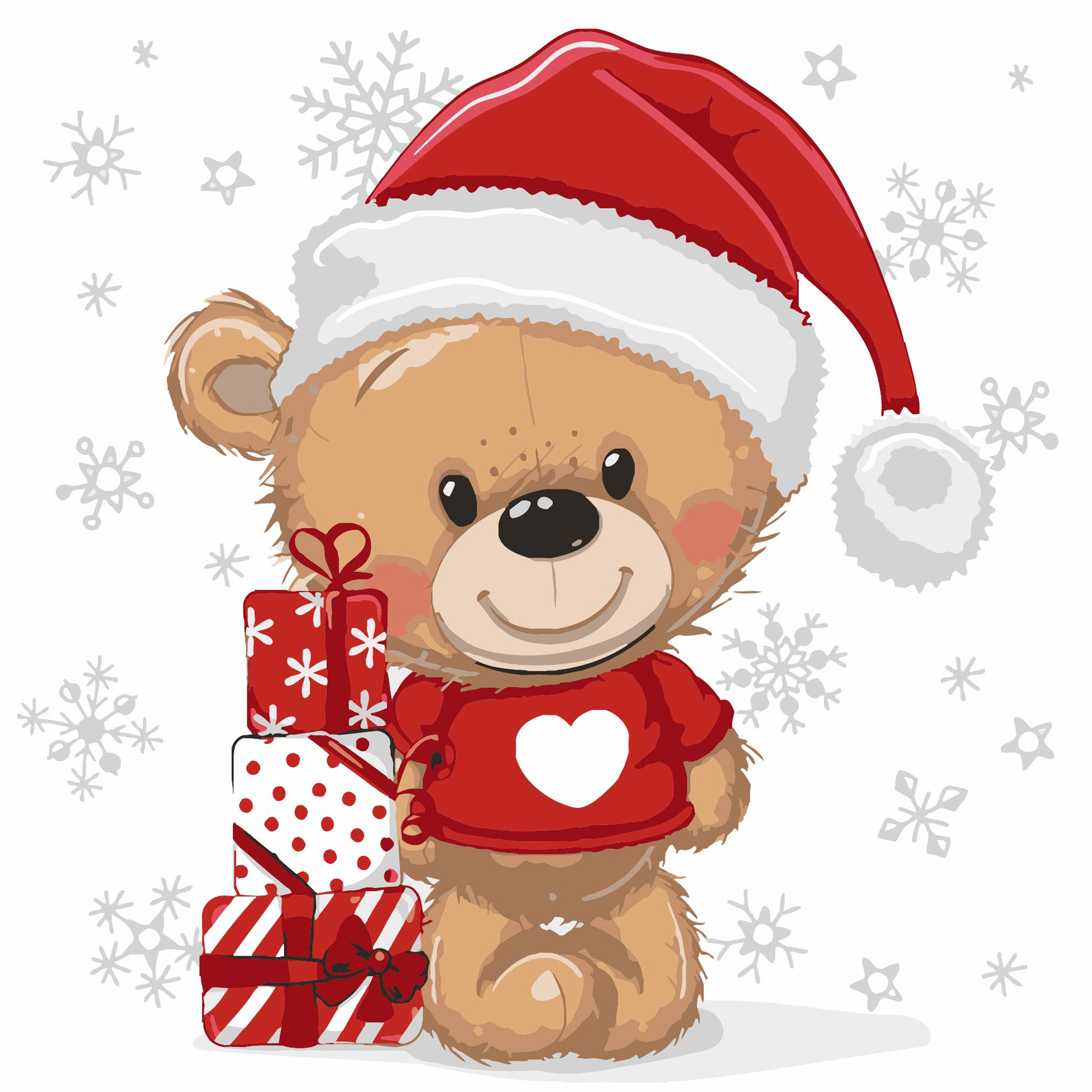 Картина за номерами Strateg ПРЕМІУМ Ведмедик із подарунками з лаком та з рівнем розміром 30х30 см (ES-0894)