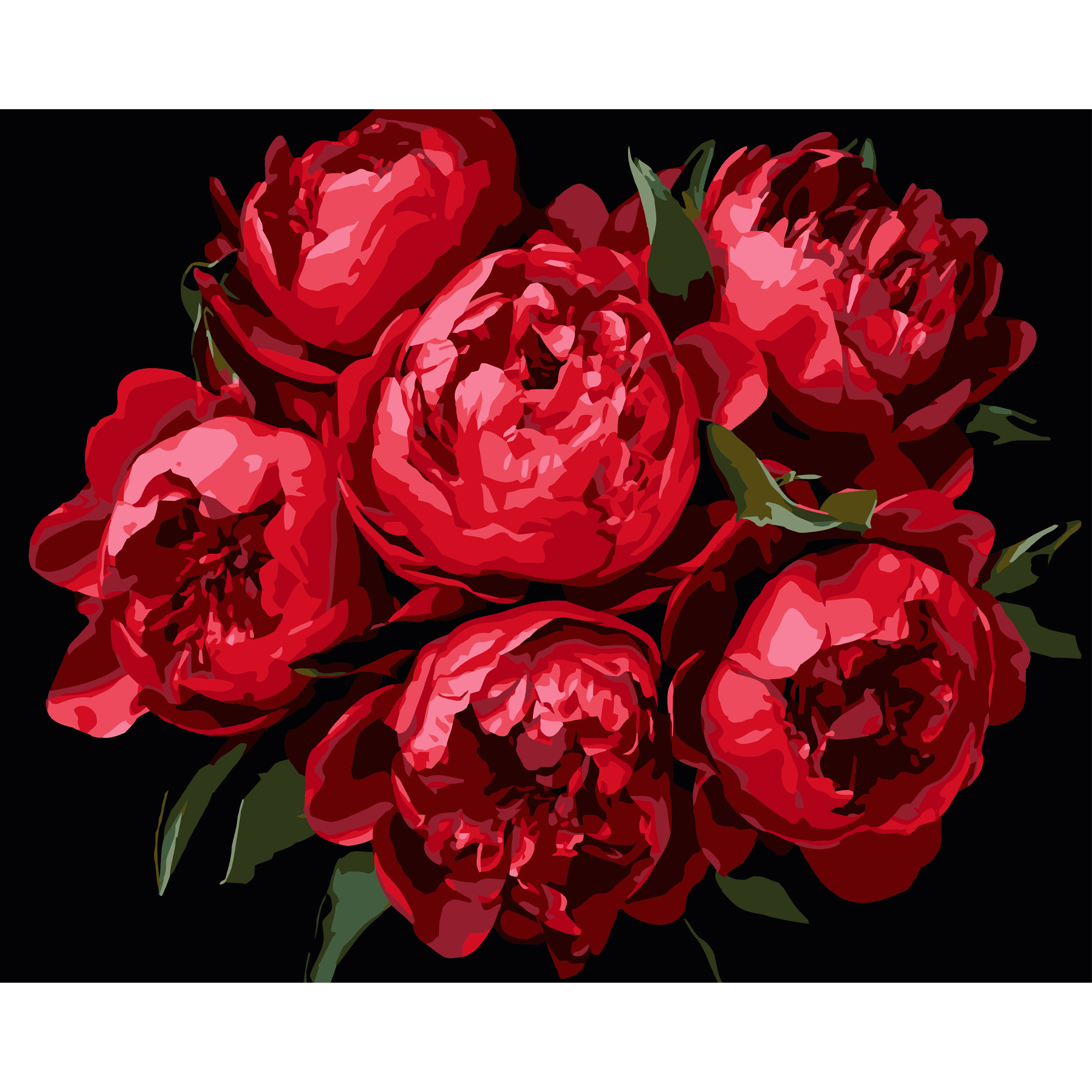 Яскраві півонії на чорному фоні розміром 40х50 см (AH1215-11)