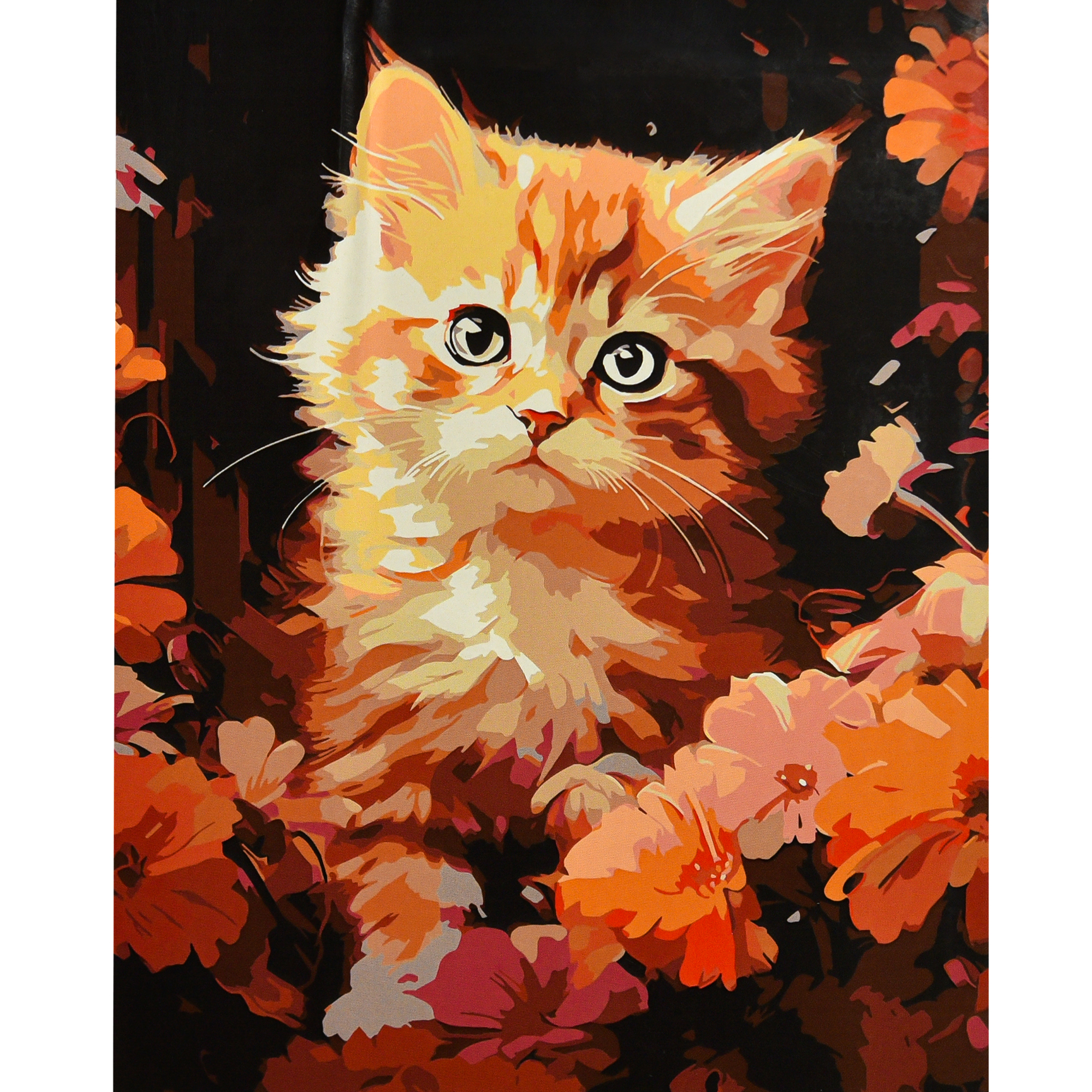 Руде кошеня в квітах на чорному фоні 40х50 (AH1303)